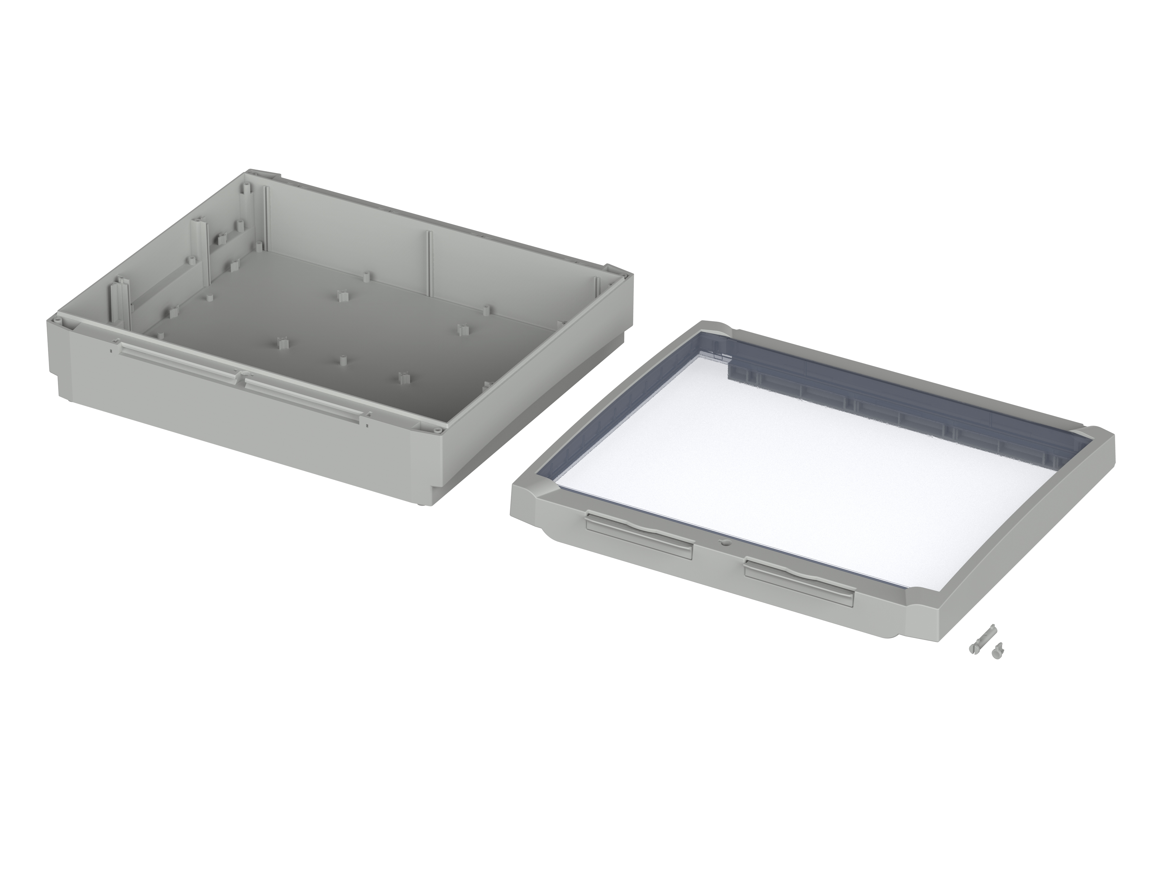 Model Flat enclosure, with clear hinged lid, without terminal compartment, light grey Manufacturer No 20413502.S